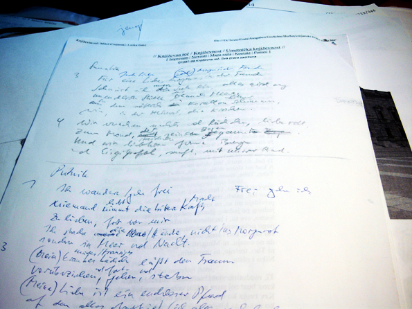 Was Kalinke anhand meiner Interlinearübersetzung nachdichtete, lektorierte abschließend Cornelia Marks, die einige Gedichte auch selbst übersetzt hat. Die Endfassung des Manuskripts wurde ebenfalls von mir durchgesehen, obgleich ich mich nicht imstande sah, eine Bewertung abzugeben. Das sollte den deutschen Lesern, Kritikern und Spezialisten für serbische Literatur überlassen werden.